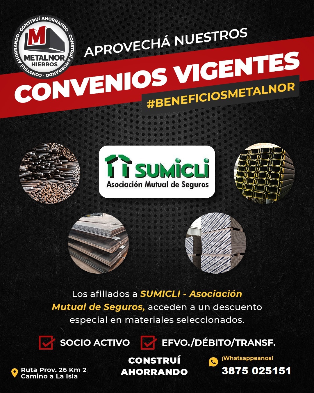 Convenios de beneficios para nuestros asociados con la empresa METALNOR.